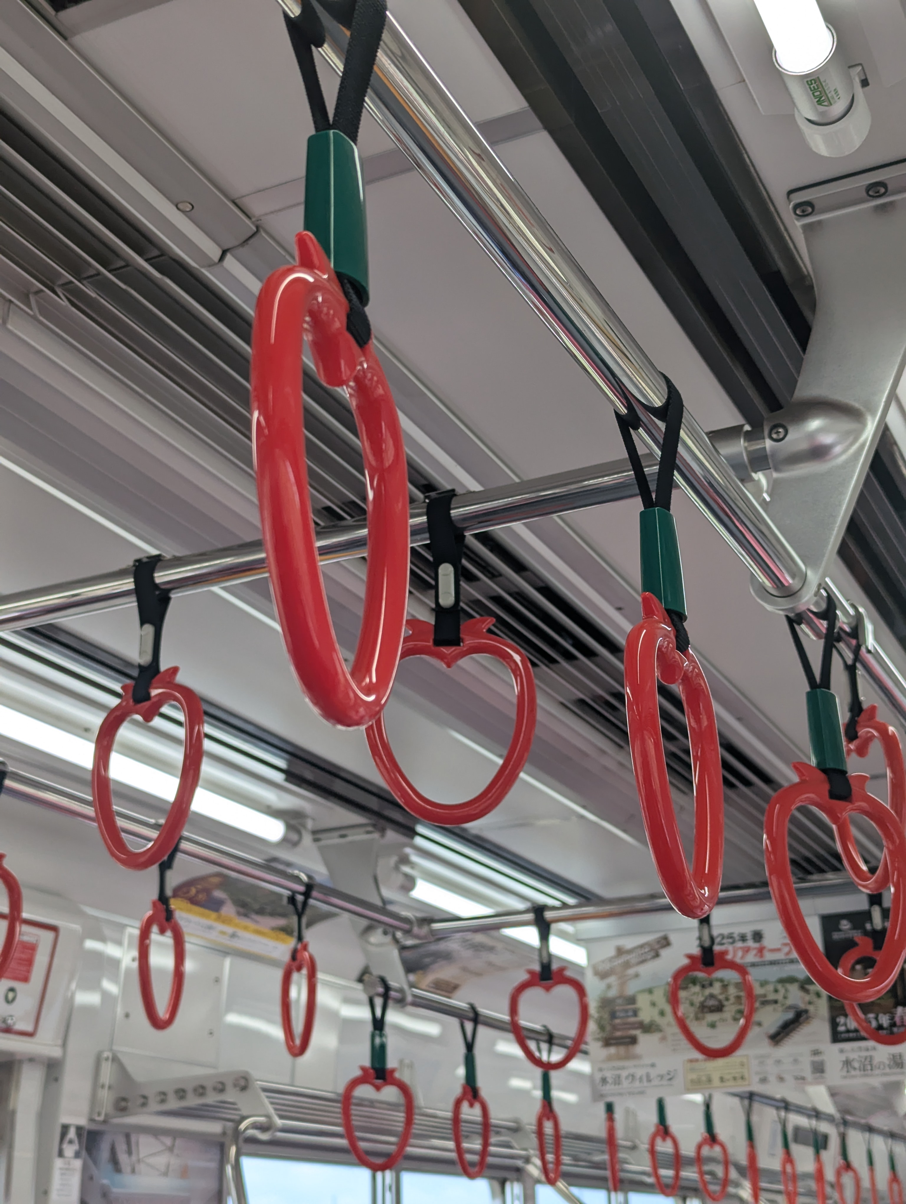 Onderweg waren de treinen versierd in leuke aardbeienstijl - blijkbaar een lokaal product.