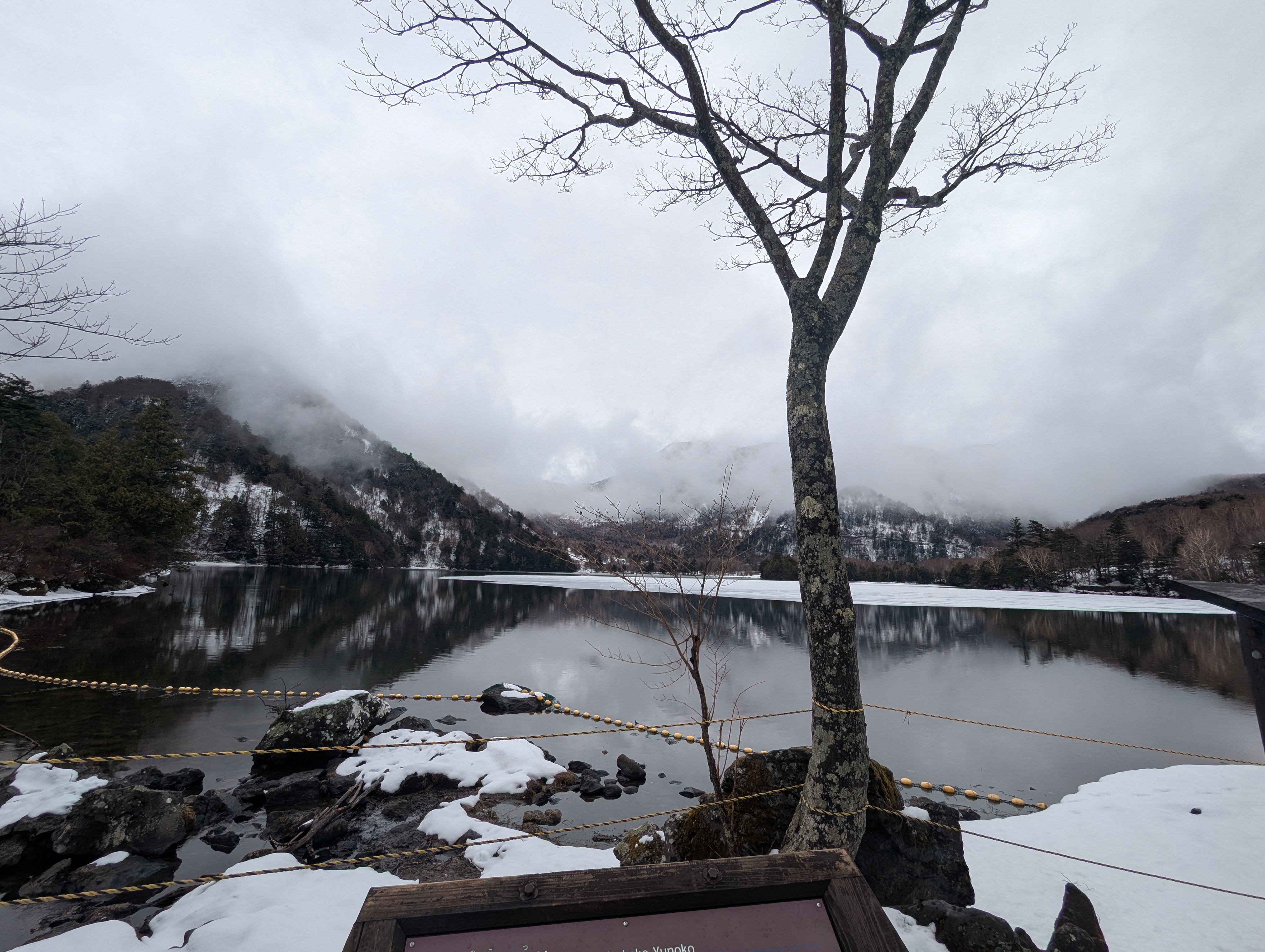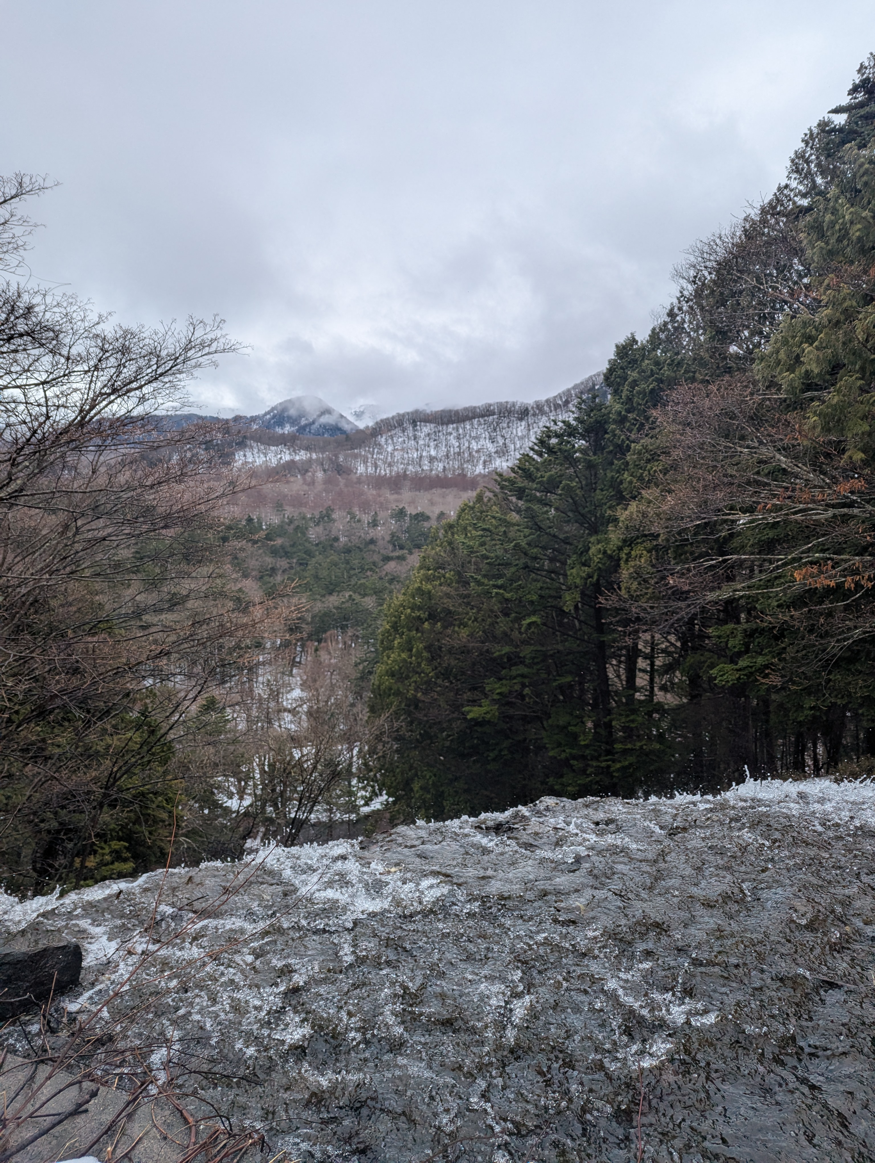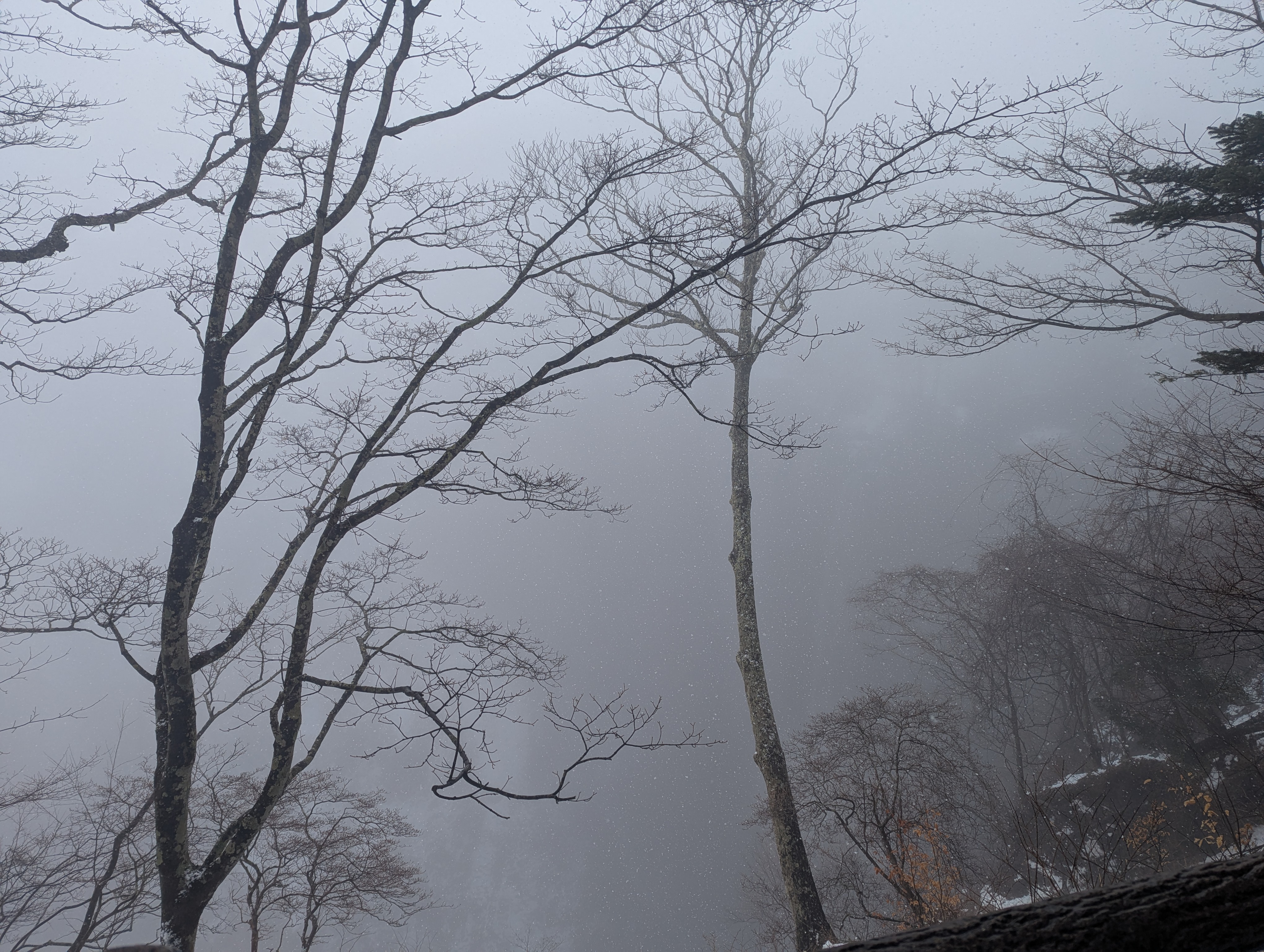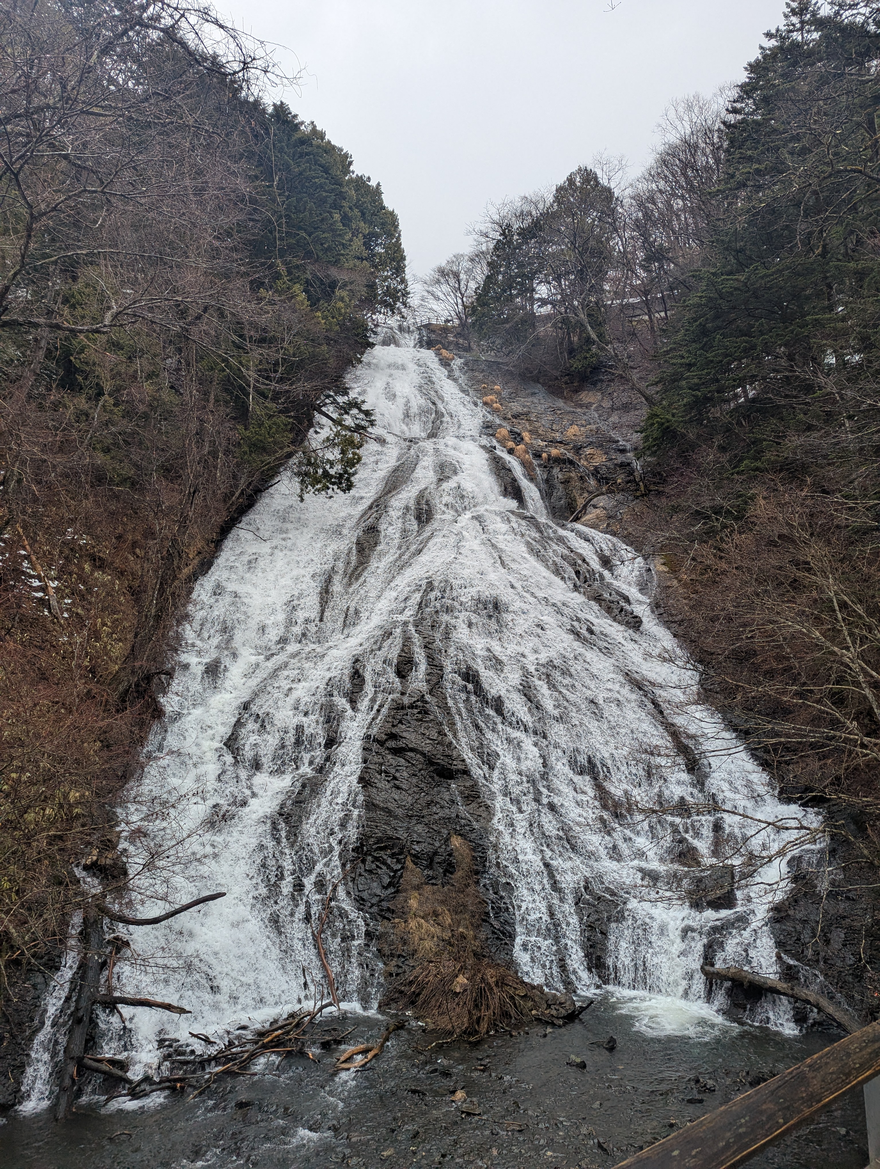 Stap één was het bekijken van de Kegon-waterval, maar helaas is een bijeffect van alle sneeuw dat je amper dertig meter voor je uit kunt kijken. De waterval was dus onzichtbaar.