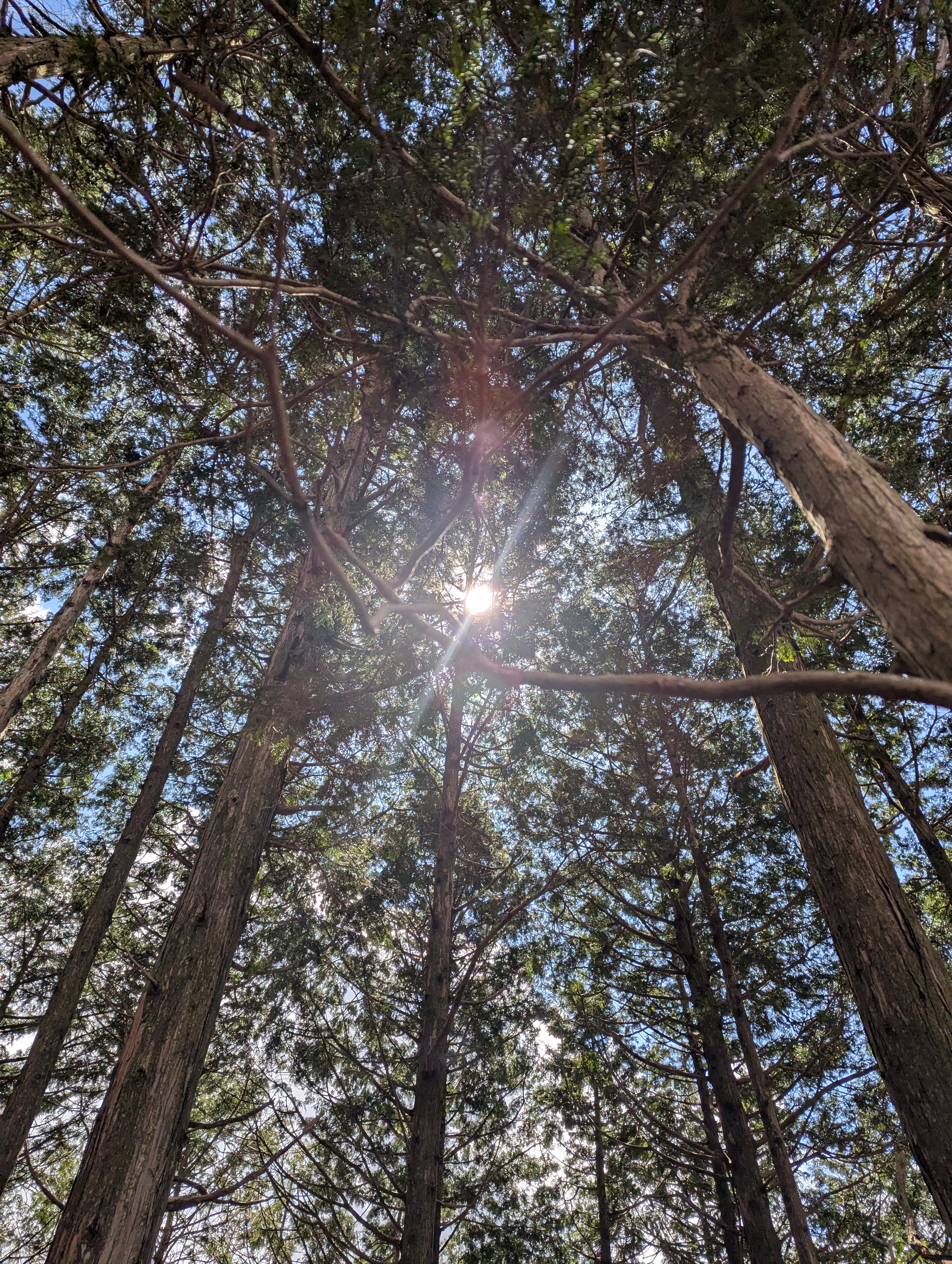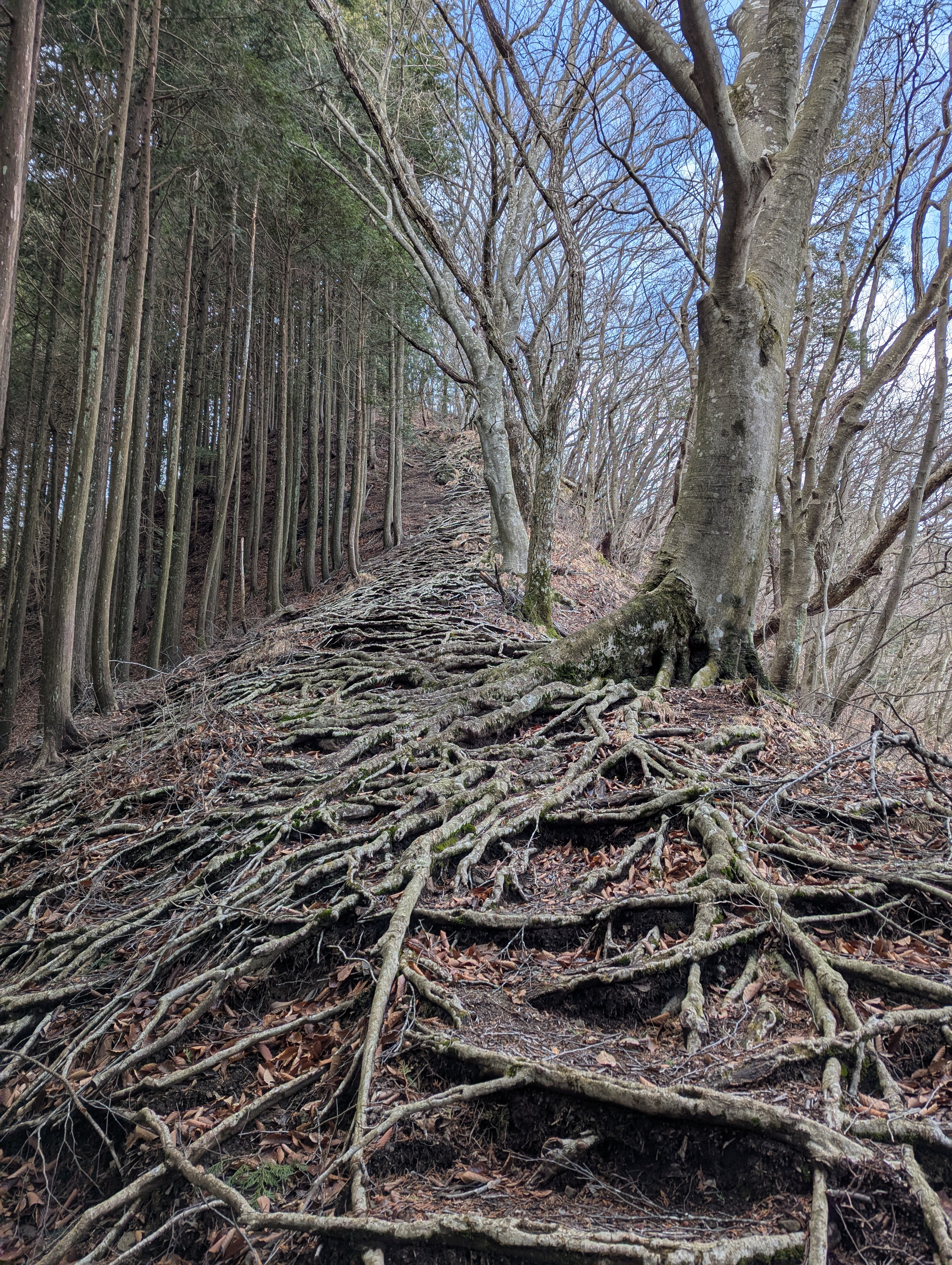 De volgende ochtend begonnen we weer vroeg aan hike nummer twee. Deze begon op een nogal vreemd pad: onder een gammel poortje door liepen we direct het bos in. Er was nauwelijks een echt pad — vooral boomstronken die je moest volgen. Het was in ieder geval behoorlijk avontuurlijk.