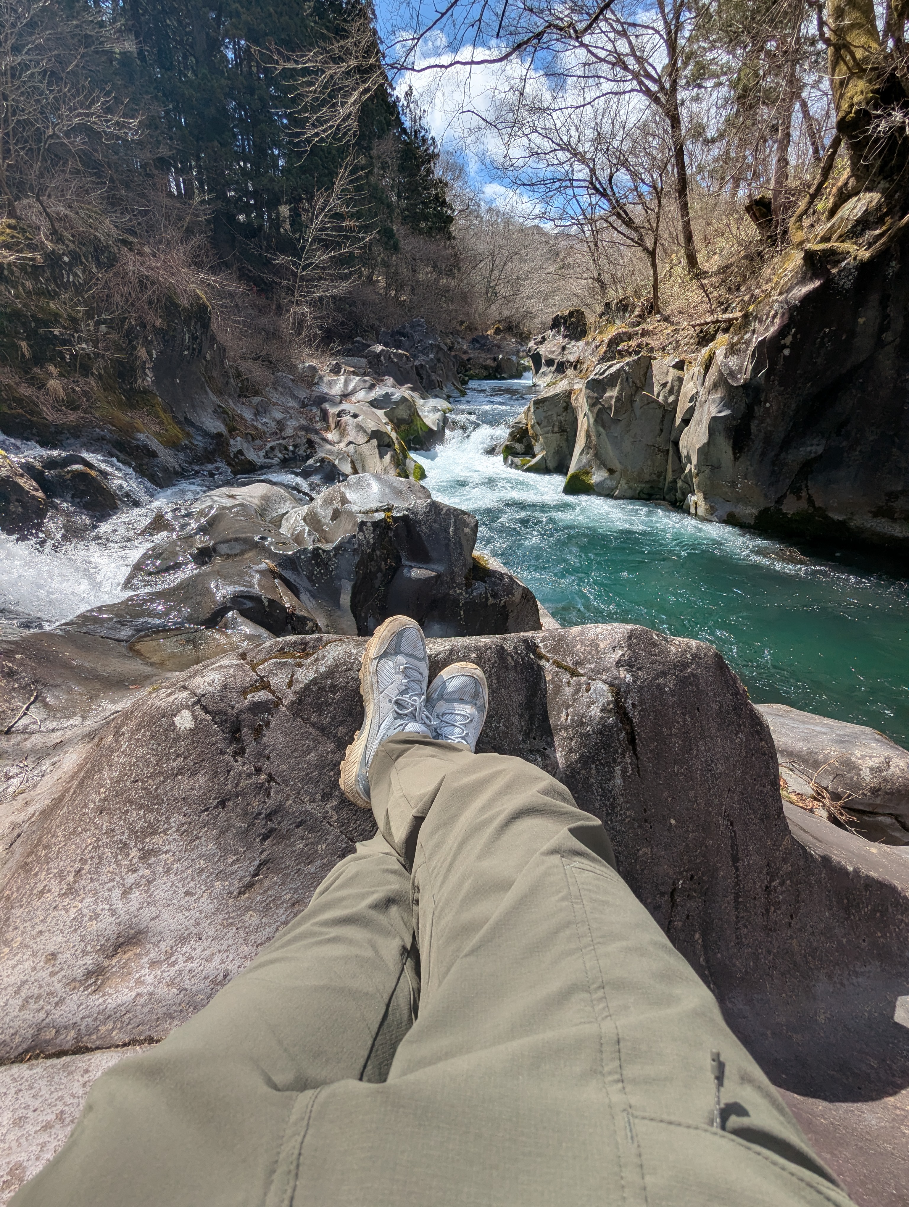 Eenmaal beneden aangekomen komen we aan bij het ‘Kanmangafuchi Abyss’. Bekend om een aantal beelden. Hier hebben we even kunnen genieten van de zon aan het water.